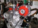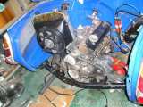 Zde je další fáze. První foto ještě bez podložky pod kaburátorem a s tekoucí vodní pumpou. Další foto už s podložkou a jinou pumpou.