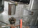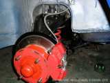 Ještě před montáží náprav bylo třeba natáhnout nové brzdové trubky. Za velké pomoci mých kamarádů se nám podařilo natahat a přizpůsobit trubky vnitřkem vozu.Pocházeli ze stejné 105 jako nápravy. Pedálová kozola byla použita ze Š100, přední kotoučové brzdy taktéž.