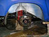 Potom jsem si mimo auto připravil široké nápravy ze Š105 M s maticí. Odrezil jsem je, nechal opravit svisláky u přední, vyměnil ložiska u zadní nápravy. To vše opět ošetřil-základ+černá syntetika.