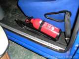 Sportovní sedačka a na jejím rámu namontovaný alu hasicí přístroj(rám je snížený a upravený rám sedačky z MB)