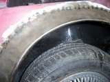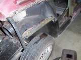 Do přední haubny přišla navařit mřížka z hundrta. Bohužel je asi o centimetr křivě, snad to nebude moc znát. Zadní blatníky dostaly kulaté lemy. Lemy jsou dost vysoko, a tak jsme zárověn upravili lem podběhu - viz. obrázek. Podběhy jsou měněné poměrně nedávno a jsou jako nové. Bohužel prahy jsou 100vkové,