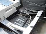 Erko vínové metalízy v kombinaci se základovkou na mě skutečně zapůsobilo. Po předchozích zkušenostech jsem skelet skutečně považoval za vyvařený, a v podstatě i byl. Jen napůl utržené rameno zadní nápravy a podivná díra ve dveřích zavařená ještě podivnějším způsobem srazily cenu na 7000, a tak jsme s bratrovým bavorákem na káře dotáhli tento vůz až do jeho dílny, kde jsme ho postupně odstrojili. Během měsíce jsem očistil spodek, stříknul gumoasfaltem, táta zavařil těch pár direk, co tam bylo, přivařil zadní rameno, taky jsme vyměnili vaničku v kufru za novou (stará už dost rezla). Každopádně mým nejoblíbenějším nástrojem se stala flexa s brusným kartáčkem (kam se hrabe ocelový kartáč!:o)). Táta navařil úchyty na nové sedačky, namontoval jsem je, jsou super a hlavně zadarmo. Mezitím jsem prodal staré erko, za 3000,- bez TP (mohly by se hodit;o)) a dal jsem mu sbohem kamsi do Sokolova. Dílnu jsem ale musel rychle opustit, vypadalo to, že velectěný bratr tam bude končit, takže jsme nandali motor, já jsem "zapojil" elektriku (rozuměj, aby to svítilo a aby blinkry blikaly) a odjel směr domov. Tam bohužel nemám garáž, takže přes celou zimu 2002/2003 jsem se pomalu na nic nezmohl, až na jaře, kdy už začalo být venku trošku příjemněji, jsem vyházel z interiéru úplně všechno až na plech (kromě palubky), vzal jsem svůj oblíbený nástroj a brousil a brousil... Pak jsem vzal Hostagrund a celý vnitřek kompletně natřel asi 2ma silnými vrtsvami, někde třema. Pak jsem použil vrchní email a znovu vše natřel, taky jsem si koupil Body a natřel jsem místa u zadních podběhů. Když bylo vše hotovo, vzal jsem medvědí h***o a zapatlal všechny dírky, které jsem našel.