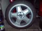 obuté. Nakoniec to má papuče v zadu 205/50 a v predu 195/50. Dopasované aj nové zadné čelo, Už zostáva iba dopasovať kapotky odvzdušniť brzdy spraviť vodu a môžme sa ísť maľovať