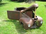 Autíčko je na dřevěném rámu a plech ručně vyklepávaný ;o)