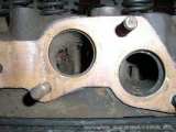 Princip je skoro stejný jako u sáni.Tady ovšem není šáhnuto frézou takže na štefty nasuneme těsnění (obrázek 12),obkreslíme kde co přebejvá lihovou fixou a můžeme brousit na požadovaný průměr.Brousíme NE do ztracena jako v případě sání ale stejně po celé délce až do místa kde se kanál rozděluje.Zbytek kanálu zbavíme všech nečistot a vyhladíme jej zmíněnou vrtačkou a šmirglem.Jediná ostrá hrana musí zůstat v místě kde kanál rozděluje směs pro jednotlivé válce. viz www.hotrally.sf.cz Na obrázku 13 je již vidět hotový výsledek i s namontovanými ventily.