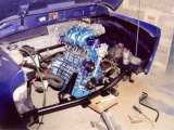 Předělal jsem interiér a mám nový motor. Ten je osazen karburátory Weber 40DCOE, vzduchový filtr ITG, vše je zatím v záběhu. Nový interiér a barevná kombinace motoru byly navrženy za spolupráce mé ženy.