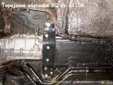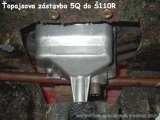Protože , Láďa chce mít vše nej, musel sem tedy vymyslet „něco“, aby nebylo hned zřejmé, že GD má o jedno převodové soukolíčko navíc a že tudíž byl proveden zásah do nosných částí skeletu a to některým nepřejícným lidem dost vadí(bohužel mají tu moc dát či nedat kulaté razítko a červenou nálepku). Tak jsem vyrobil zakrývací plech, který je zasunut do držáku převodovky a přišroubován k podlaze a přes stávající díry i k držáku převodovky.