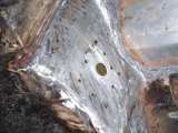 Nakonec jsem usoudil, že díra už je dost velká a převodovka se nebude nikde dotýkat skeletu a začal řešit opětné zakrytí vzniklého "kráteru". Protože jsem musel zachovat původní sedačky a hlavně jejich polohu i tady na horní straně tunelu jsem zkoušel co si vlastně mohu dovolit. Vyrobil jsem šablonky z tvrdého papíru a začal tvarovat zakrývací plechy (horní část tunelu).