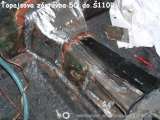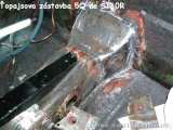 Největším problémem při vaření cé-óčkem se ukázal místy velmi kvalitní a silný nátěr asfaltovou hmotou , která nešla dokonale odstranit. Původně jsem chtěl použít jako ochranou atmosféru při svařování směsný plyn, ale nakonec jsem musel použít klasické CO2 . Použití směsného plynu zaručuje vzhledově lepší svar , použití menších svařovacích proudů, ale vyžaduje dokonale očištěné plechy a to se mi bohužel nepodařilo . Po pár pokusech , kdy místo svaru vznikaly návary a propaly jsem to vzdal.