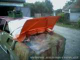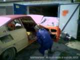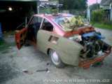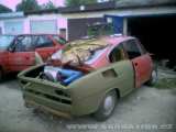 Na autě byly laminatove kryty prahu a lemy blatniku + vzadu tezke laminatove kridlo od kteryho byly oklepany blatniky seshora jak to do nich pri jizde mlatilo. Po odbrouseni techto kramu z vozu [byly nytovane] sme jaksi zjistili ze zadni blatniky uz nemaji lemy a u prahu pres ne bylo dost dobre videt skrz. Takze sme rozhodli ze se musi sehnat jine. Tim padem sme zacali s rozebiranim. Auto sem zbavil zadnich blatniku, krytu motoru, zadniho cela, krytu kufru i prednich blatniku s celem...takze odstrojena cela vnejsi plecharina.