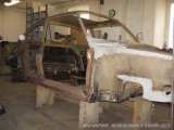 Na začátku zimy 2007/2008 jsem auto odstěhoval ke kamarádovi na dílnu, kde jsme ho otočili na bok a....nestačil jsem se divit. To co vypadalo na první pohled ne zas tak tragicky, se ukázalo velmi tragickým v momentě kdy jsem do letitých nánosů barev a tmelů všech druhů opřel šroubovák, později i kladivo. Vzhledem k tomu, že vyhodit to to celé do šrotu mi bylo líto, rozhodl jsem se, že to zkusím opravit. A takhle nějak to probíhalo a probíhá...