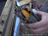 Po vyčištění karburátoru a odvzdušnění brzd jsem auto projel a zavezl do garáže. Následovala debordelizace, vytrhání koberců a filců z interiéru, odstranění myšího hnízda a několikeré propláchnutí vodou. Už to ani vevnitř tak nesmrdí. Horší to je po odstrojení předku vozu...viz fotky.